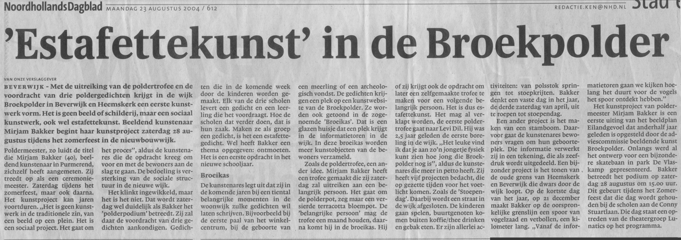 Artikel in Noordhollands Dagblad op 23 augustus 2004 (klik op afbeelding om te lezen) |