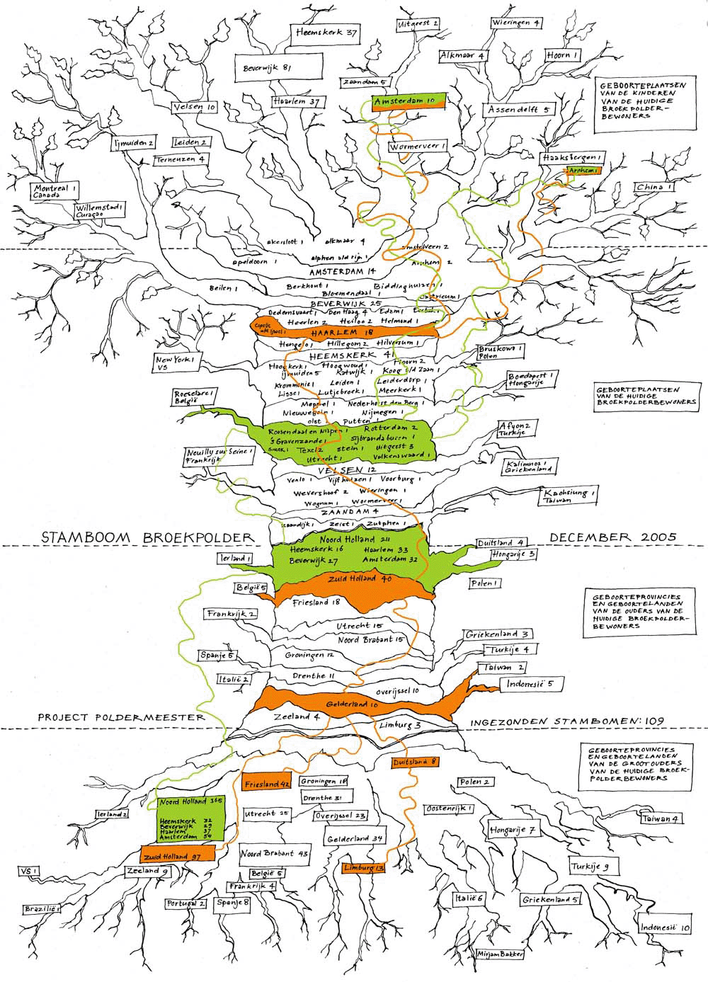 De enquêtegegevens verwerkt in een stamboom (klik op afbeelding om in detail te bekijken) |