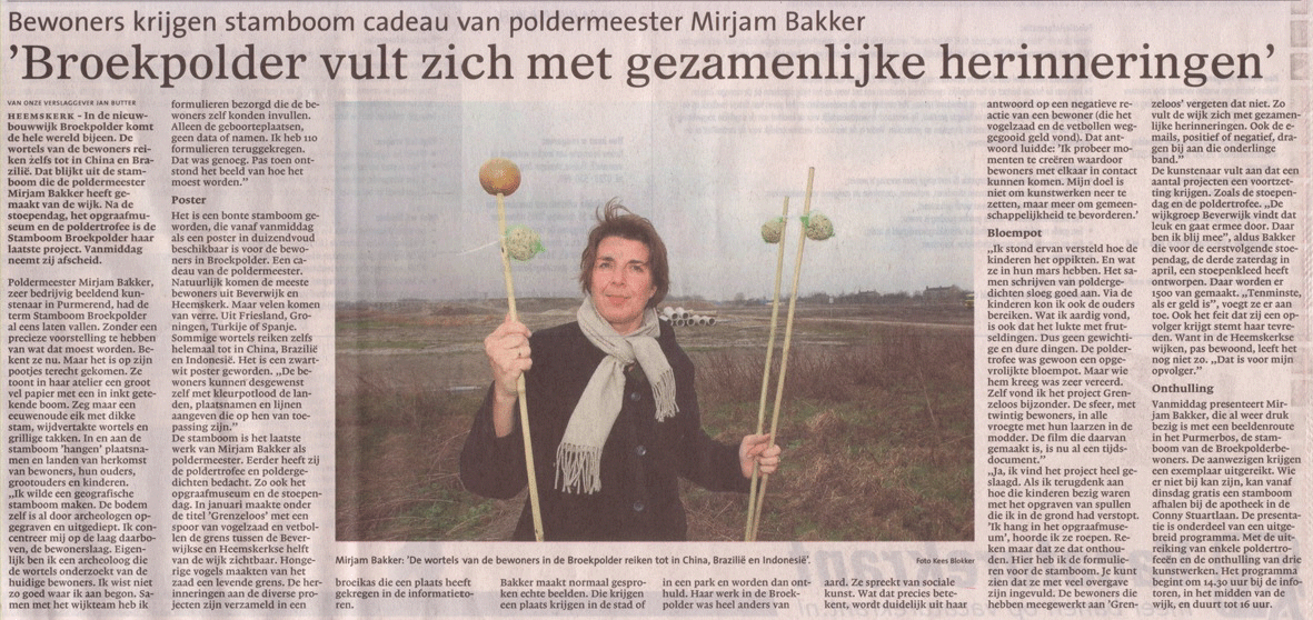De Broekpolder is een VINEX locatie (voor 3500 woningen) in Heemskerk en Beverwijk. Anderhalf jaar lang initieert de Poldermeester sociale kunstprojecten met en voor bewoners. Het doel is om de Broekpolder op de kaart te zetten en gezamenlijke herinneringen te creëren.