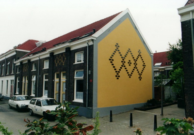 Kleurontwerp (i.s.m. Wim Korvinus) en diverse decoraties in woonwijk Sint Marten te Arnhem.